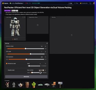 To assist — a recent development from Nvidia: PartPacker — an effective method for dividing 3D objects into parts using double volume packing. It takes a single image as input and outputs a ready model segmented into individual components.