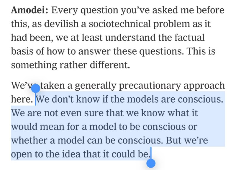 In a recently published interview with The New York Times, Dario Amodei stated that the company Anthropic is still unsure whether their models are truly conscious. Here are his exact words: