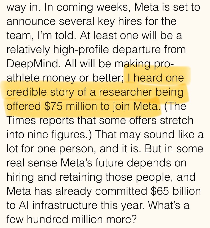 Over the past few weeks, there have been constantly new rumors that Meta is spending large sums—$10 million a year on pure salaries, and sometimes much more, not including equity. It is said that Mark Zuckerberg is personally involved in negotiations with top candidates, selecting the best specialists for his AI team.