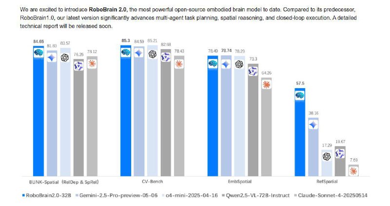 Currently, the model is available in a 7V version, with a plan to release an update at 32V soon. According to tests on robotics benchmarks, this model demonstrates excellent performance, surpassing both open and commercial competitors, including Claude Sonnet 4 and o4-mini.