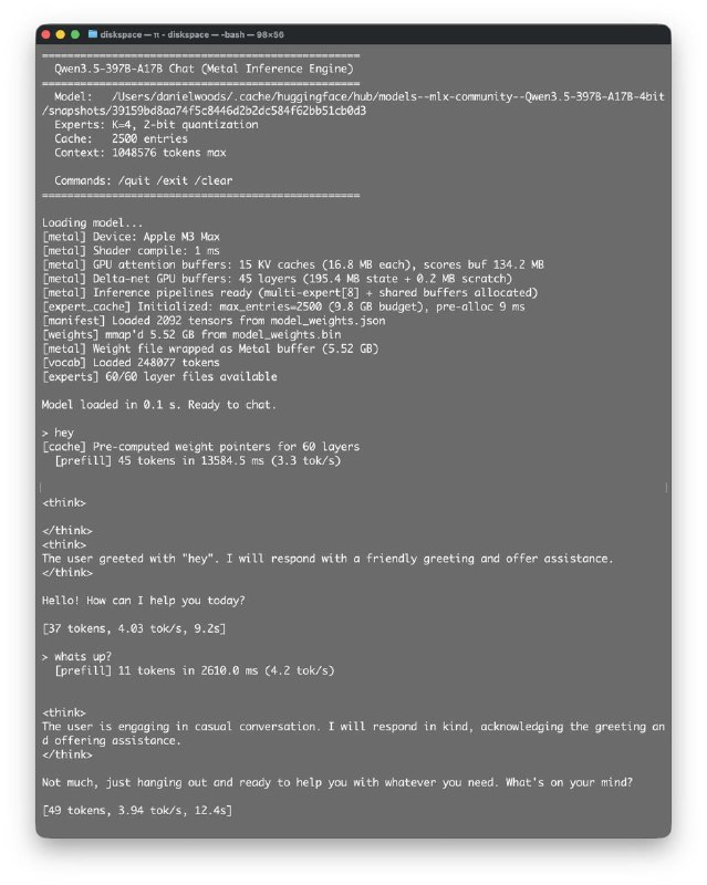 You can take an example from Dan Woods, who decided to run Qwen3.5-397B on his M3 Max with 48 GB of RAM (he mentioned this in a tweet).