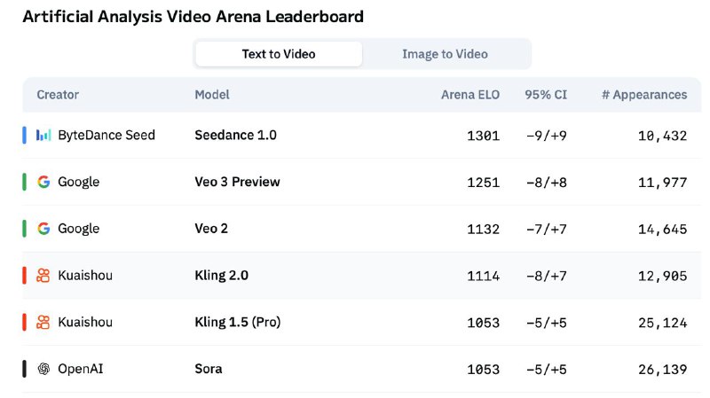 ByteDance has introduced a new version of its model — Seedance 1.0. It can create 5-second videos in 1080p resolution in approximately 40 seconds. The image remains sharp, characters stay stable, and transitions appear smooth. In the latest Artificial Analysis ranking, the model outperformed previous leaders — Veo 3, Kling 2.0, and Sora. To evaluate their effectiveness, the company developed the SeedVideoBench test suite, where Seedance demonstrated the best results in dynamics, query accuracy, and visual appeal. This fall, the model is planned to be integrated into the Doubao chat and the Jimeng video platform.