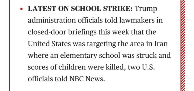 It has just been announced: representatives of the Trump administration at closed briefings informed lawmakers that the US has focused on a region in Iran where a primary school was recently struck, resulting in the deaths of many children, two American officials told NBC News.